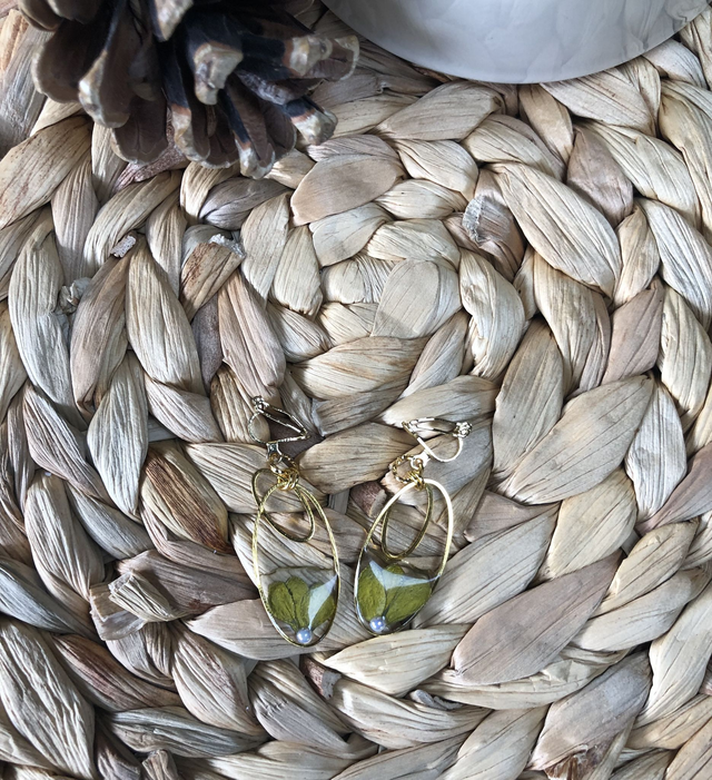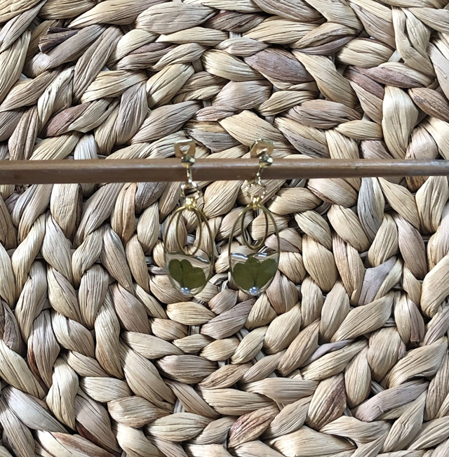 3. 🧵 Matières :résine UV, Feuilles dorées, demi-perle nacrée : touche poétique, clips en acier inoxydable