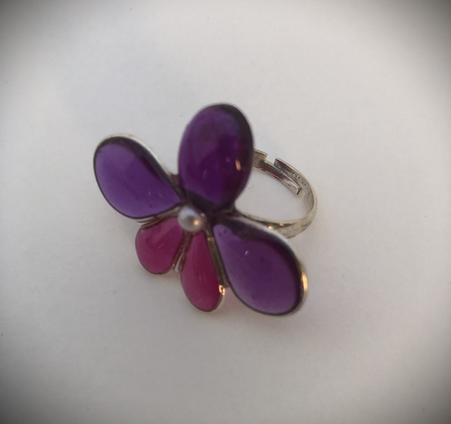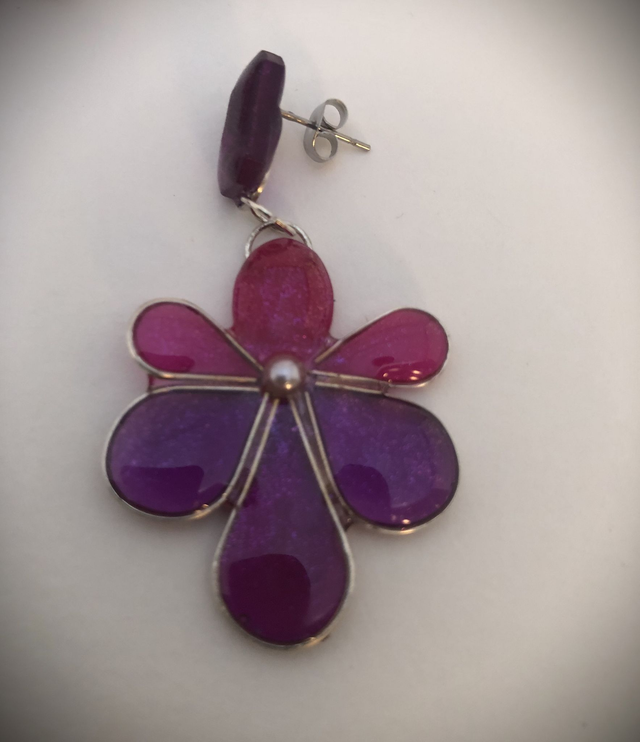 🧵 Matières : résine rose et violet, fils artistiques, demi-perle blanche