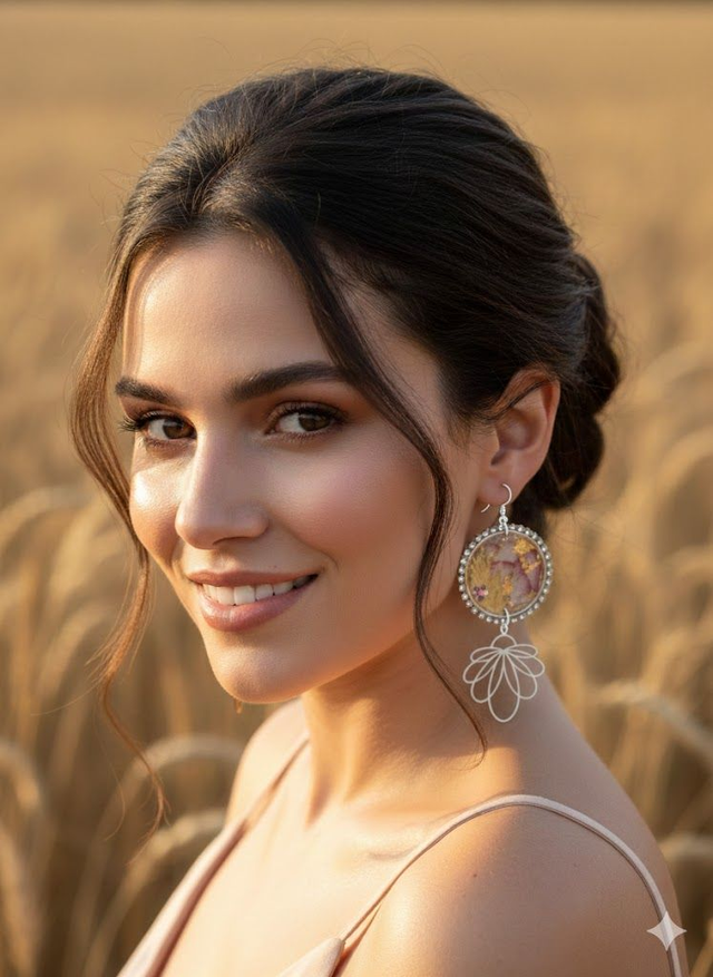 La résine transparente révèle de véritables pétales de rose, symbole d’amour, de douceur et de féminité. Le fond doré apporte chaleur et lumière, tandis que la suspension dorée créent une composition élégante et harmonieuse. Ces boucles incarnent la poésie florale, la délicatesse et l’éclat, et accompagnent chaque mouvement avec grâce et émotion.