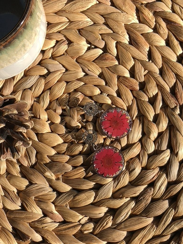 Boucles d'oreilles Redlight - design rond et marguerite rouge