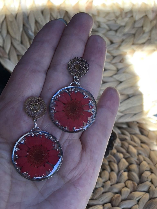 🧵 Matières : résine transparente, marguerite, paillettes argentée, cercle et puce ajourée en acier inoxydable