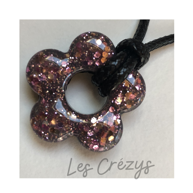 Ces boucles d’oreilles captent la lumière avec raffinement grâce à leurs paillettes violet foncé délicatement intégrées dans la résine transparente. Leur design en forme de fleur symbolise la féminité et la douceur, tandis que leur fermoir dormeuse rectangulaire assure sécurité et confort au quotidien.