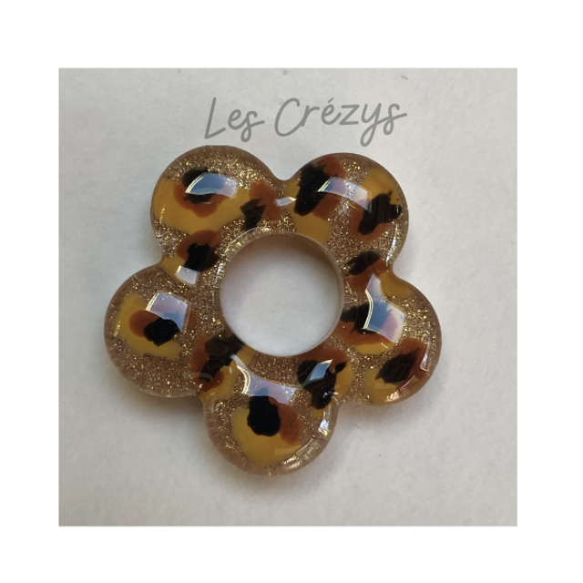 Ces boucles d’oreilles captivent par leur mélange harmonieux d’audace et de féminité. Le fond doré lumineux évoque la chaleur et le luxe, tandis que le motif léopard délicatement intégré dans la résine apporte une touche de caractère unique.