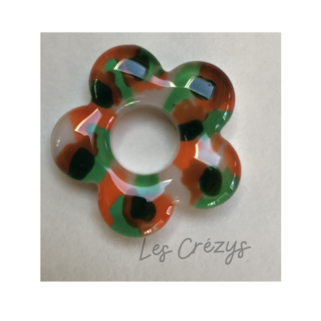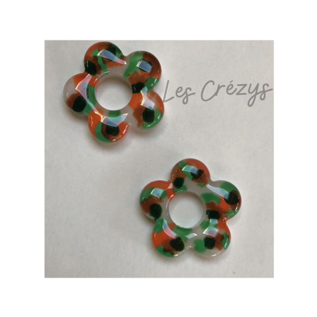 Ces boucles d’oreilles séduisent par leur délicatesse et leur fraîcheur. L résine blanche est ponctuée de subtiles touches d’orange, de vert clair et de vert foncé, rappelant les nuances d’un jardin au printemps. Leur forme florale harmonieuse et leur fermoir dormeuse rectangulaire assurent à la fois élégance, confort et sécurité.